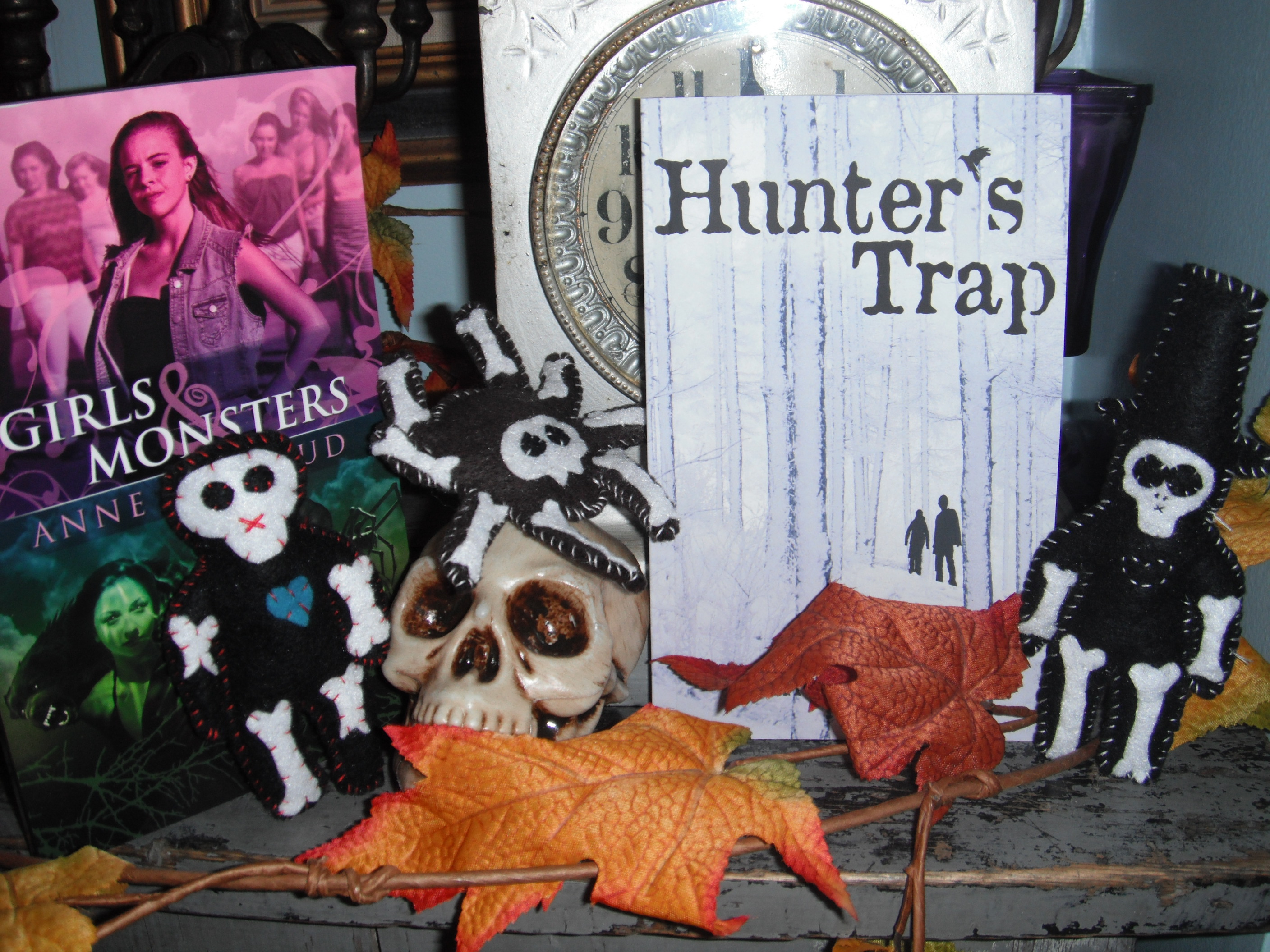 My rules are very simple: fill the form below to win paperbacks of Girls & Monsters and Hunter’s Trap, and a Skellie (either be a vampire, a zombie or a spider), but you have to either follow this blog, follow me on twitter or follow my facebook page – your name or alias will suffice, as proof. And if you want to tell me your best Halloween secret, it’ll make me a happy girl♥ The contest ends on Halloween night, at midnight, and the lucky winner’s name will be drawn in a hat the next morning.
